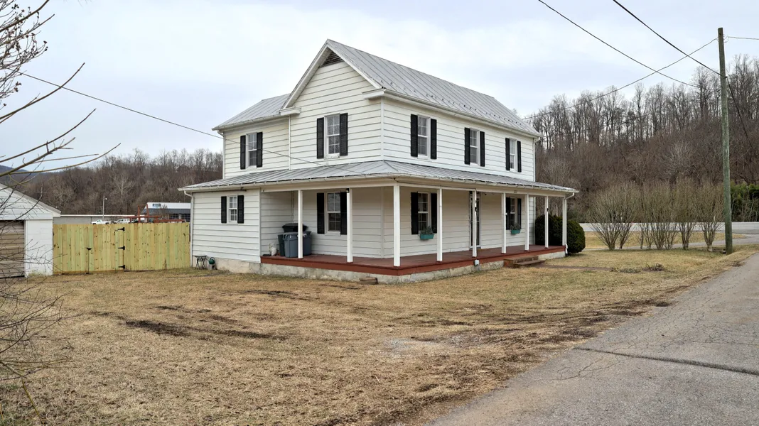 This charming farmhouse with a wrap around & covered front porch is situated on a flat, fenced backyard with a detached two car garage and barn/chicken coop with lots of garden space or place to play! Conveniently located to I-81, Christiansburg, Salem, Blacksburg, VT, etc...This beautiful home has plenty of living space with a large living room, family room, eat-in kitchen, sun porch and primary bedroom on the main level with storage space in the unfinished basement. The second level boasts two additional large bedrooms plus another large room for a den/rec room/office space! This home is in move in condition and ready for your next chapter in life! Call for a private showing today!