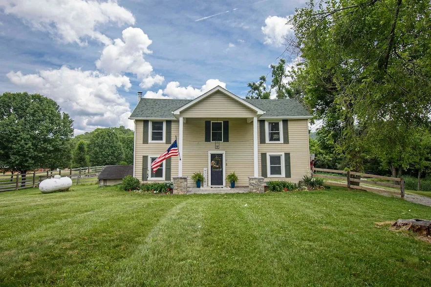 Nestled in the picturesque Ellett Valley, This updated home offers a serene blend of historic charm and modern comforts. This 1910 farmhouse, situated on approx. 3.6 acres within the sought-after Blacksburg School District, boasts captivating mountain views and a tranquil pond oasis. The home encompasses 2,432 sq ft, featuring 3-4 bedrooms and 2 full baths. The "Den" on the main level offers potential for a 4th bedroom. The main level offers refinished hardwood floors, while the upper level showcases new flooring throughout. Recent enhancements include updated kitchen, bathrooms, electrical and plumbing systems, a newer architectural shingle roof (2022), and a well-insulated structure. The home is equipped with zoned heating, a propane furnace for auxiliary backup, and cozy wood stove in the living room. Enjoy the scenic beauty from the side patio, overlooking the stream-fed, aerated pond. The property also features a gazebo, chicken coop, shed, and a large fenced yard.