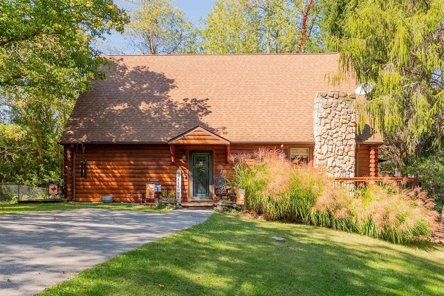 Step into the warmth and charm of this cozy 2 bedroom, 2 bath log cabin retreat on 1.75 private, tree-lined acres just 1.5 miles from Prices Fork and Moon Hollow Brewery. Classic log siding, a stone chimney, fenced yard, shed, welcoming front porch, expanded decking, and hot tub create the perfect outdoor oasis to relax while observing area wildlife. Inside, enjoy a gas fireplace, open floorplan, main level bedroom with private deck access, den/office, and upper-level primary suite with private bath and large closets. Recent updates include exterior sanding/restain, new fence & new HVAC (2022), gas fireplace serviced (2024), new water heater & septic pump/inspection/updates (2025). Dual-zone heat pump adds comfort year-round. With rustic charm, modern updates, and a tucked-away setting, this home is ideal as a year-round residence or peaceful weekend retreat — offering privacy and conven...
