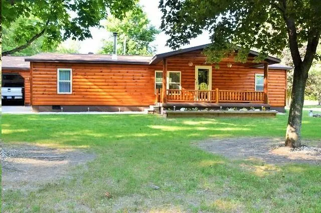 NORTHERN COMFORT- Beautiful log sided home off county maintained road on 20 acres. T & G pine, cedar walls & ceilings, carpeting & hardwood,wood stove, CA & main floor laundry. Country side views from front & rear covered porches. 2 stall att. garage w/concrete floor & drains, det'd garage w/under ground electric & concrete floor & shed. Camper or travel trailer stone mix pad w/electric hook up. Custom dug rifle range & raised tower blind. Enjoy watching the wildlife visit the apple trees outback.