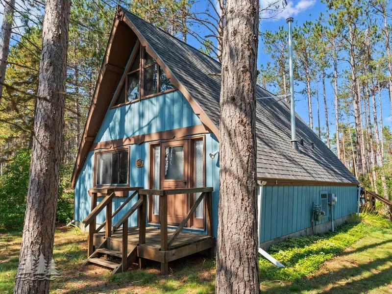 Tucked into 10 wooded acres on the snowmobile trail system, this A-frame cabin is the ideal Up North basecamp. Inside, you'll find cozy wood-paneled walls, vaulted ceilings, and a warm, rustic charm that invites you to relax after a day outdoors. The spacious deck offers peaceful views and the perfect setting for morning coffee or evening gatherings. A 24x40 pole building with cement floors provides excellent storage for ATVs, sleds, and gear. Just minutes from thousands of acres of state land, the Lewiston Fun Ones, and the local sportsman's club-this is where adventure meets serenity.