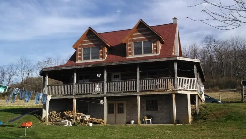 45 acre limestone farm w/ 5 bedroom hemlock log home, large bank barn and shop, level land for poultry houses located along Rt. 254. No electric on property.