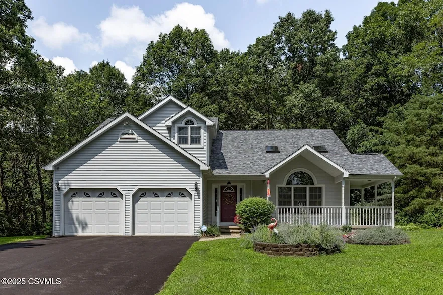 Discover your private retreat just minutes from town. Pristine condition on a private wooded lot with mature landscaping and 3,700 finished living space. Enjoy a wrap-around porch and grand oak staircase. Glick kitchen with granite counters, island, breakfast nook, and formal dining. Vaulted ceilings in living and sun rooms; hardwood and tile throughout; family room with fireplace. Second floor includes catwalk, primary balcony, roll-in shower, and open office/optional 4th bedroom. Finished lower level with family room, wet bar, gas stove, theater, and 3 4 bath. Generac generator, 1st-2nd floor elevator, EV wiring, California Closets, private rear deck, shed, and covered fenced dog run. Home ready for immediate occupancy. Call Scott 570-412-6121.