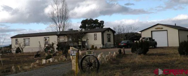 Lovely 5.2 acres featuring a 3 bedroom 2 bath manufatured home and a 864 s.f. unattached garage. Property is nicely landscaped and has various outbuildings. Fantastic views. Right at the edge of town. Desert type landscaping in the front and nice green lawn with fish pond in the back. Covered back deck. Back yard overlooks the canyon.