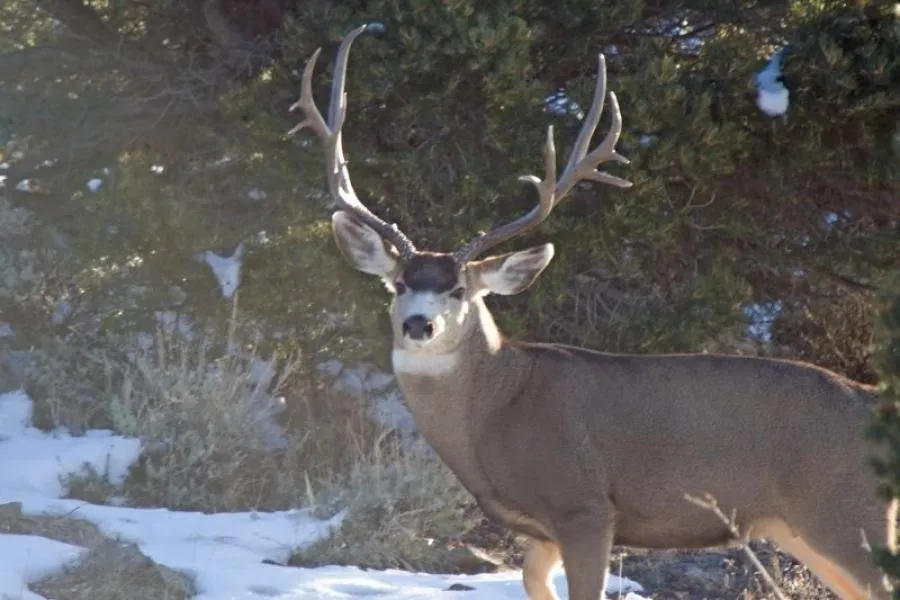 Poverty Mesa Ranch is +/- 640 acres and is situated outside of Montrose Colorado at the top of Cerro Summit. It is a mixture pinion pines, junipers and sage with a few seasonal springs that run through the ranch. The terrain is rolling hills and pockets where you can find mule deer. The area is right on the edge of Black Canyon National Park and is world renown Mule Deer hunting as the terrain boasts great feed for horn growth. The land borders irrigated fields where the game feeds at night and beds in the coulees and deep cuts that offer a great bedding area. Two sides of this ranch border BLM ground for great access to public ground through this property. The Mule deer hunting is definitely managed for quality bucks on the property with opportunities at 180 bucks every year. As far as the elk hunting there's good quantity with the chance at 5pt bulls almost every season. If you can't, the property lies in unit 64 where you can get over the counter archery bull tags and over the counter 2nd and 3rd season bull tags. Since the property is over 160 acres it can be enrolled in the landowner preference program where you can get multiple buck tags ever year for this property. And if your an avid fisherman you are within miles of the Gunnison river and Montrose reservoir which holds monster rainbows and browns.
