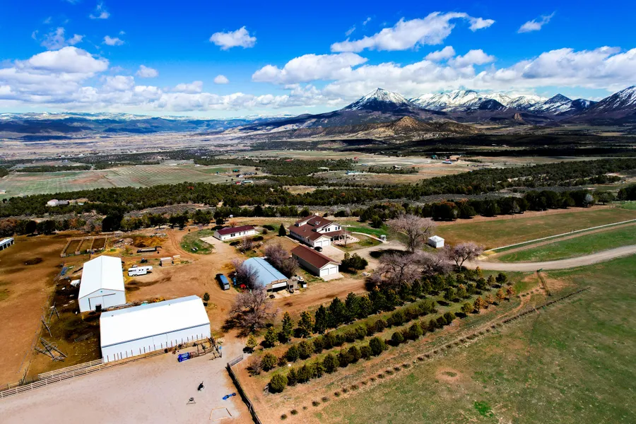 Located Just 5.6 miles Southwest of Crawford, Colorado, this 200-acre property sits on Fruitland Mesa, a broad mesa dotted with productive hay farms, ranches, and cabins. Just 8 miles south of the ranch is the dramatic and stunning North Rim of the Black Canyon. At 7,000 feet in elevation, the ranch enjoys sunny, cool summers and relatively mild winters. The area is known for growing outstanding grass/alfalfa horse hay that is prized all over the country for discerning horse owners. This is a working farm with an outstanding set of improvements, starting with the 8,000-sq ft home. Built in 2004, the owners built it to LAST. The home has 4 bedrooms, 4 baths, a huge family room, and a walk-out basement, and 9-foot ceilings on the main floors and the upstairs. There is a spacious 2-car attached garage and an additional 3-car detached garage, a 60x80 machinery storage building, 40 x 112 hay barn, and a1680 sq ft 3BR 2BA modular home for a caretaker or ranch manager.