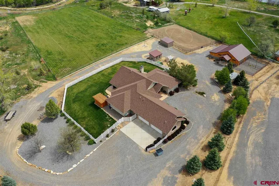 This is Western Colorado! Your dream horse ranch awaits you. Located on desirable Spring Creek Mesa this 9.24 acre parcel is privately tucked back off of Oak Grove Rd and bordered on the north by the M & D canal. A true sanctuary of beauty overlooking your pond, the pasture and vast milky way. There is no shortage of stunning views of the Montrose valley, and the Grand Mesa. This custom home has every feature you could desire and more. Built to use, and enjoy with no detail left out. Choose your relaxing space on the 1,200 sq. ft. covered patio with surround sound, under the cedar pergola, or in a salt water hot tub. Or how about retreating to the darling artists studio out back? It's time to bring your horses home to a stunning ranch facility. The like new 1,349 square foot horse barn that was built with beetle-kill pine features double insulated walls, decorative open trusses, a tack room, large wash rack, concrete floors, two 12' X 12' stalls with Dutch-doors and generous turn outs and room for a third stall. The heated tack room has custom saddle racks, cabinets with granite counters, and bathroom with sink. Outside you'll find access to another 5x10 insulated room, 400-square-feet of protected hay storage, sand arena, and a run-in shed that attaches to approximately 3 acres of grazing area. East of pasture there is another 1-2 acre dry lot. A green house too! The property is fenced with pipe and poly plus wire and has a drip system. Solar entry security gate. RV hookup with dump station. Self sufficiency and sustainable living can be yours in Montrose, CO.