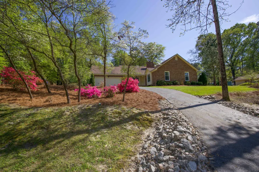 Country living feel with close proximity to town, Fort Bragg, local shopping, restaurants and attractions. This one level, 3bedroom brick home has been well cared for and is ready for new owners. Situated high on the spacious, private lot, the circular driveway and front porch over look green space across the road. All kitchen appliances convey including the fully stocked wine chiller. The kitchen was renovated about 5 years ago and has gorgeous, custom built Locklear cabinets. You will find hardwood flooring throughout, new windows and french doors with built in blinds. New overhead lighting was also added and the den off the kitchen is home to a cozy wood burning fireplace. Home is wired for a generator and has a security system. The ring doorbell will also remain in the home. You will stunning landscaping , the fenced in yard and the 2 outbuildings. New deck was put on in 2020. were also updated with custom cabinets and walk in showers and granite counters. The enormous living room at the front of the home is sure to be a favorite family gathering spot. Window treatments will also stay and the kitchen bistro table is negotiable. Immaculate garage with tv and additional lighting and a large walk in attic with new pull down ladder.