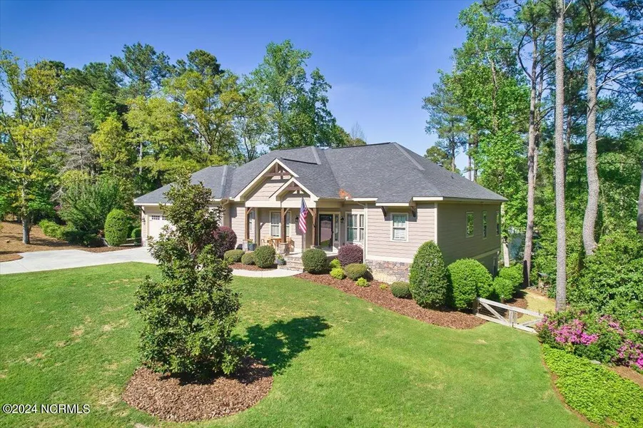 *Please submit Highest & Best by Thurs, 4/25 @ Midnight.* Gorgeous custom Lakefront home on Pine Lake in Whispering Pines! Beautiful private sandy beach, and large newer dock! This home has over 3900 square feet of living area, and has a fantastic entertaining set up! The open kitchen has a gourmet island with quartzite counter, farm sink, gas cooktop, built-in microwave and oven, and abundant catch-and-close custom cabinetry with a place for everything. The view from the kitchen to the family room with floor to ceiling fireplace and coffered ceilings is indicative of the quality throughout this beautiful home. Formal dining area has wet bar and beer/wine fridge. The primary suite is on the main level and is facing the water, with a beautiful tray ceiling. The primary suite has a walk-in closet with custom built-in cabinetry, tiled bath with tub and shower, separate double vanities, and ...