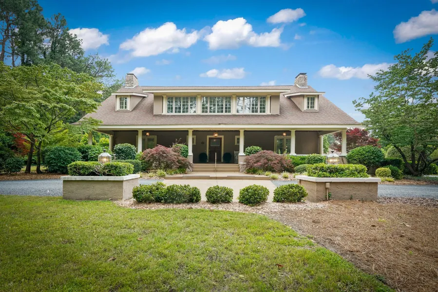 This impressive home features 5 BR each with a fireplace, 5 full bathrooms, 3 half baths, and a total of 9 fireplaces throughout the house. The large stone fireplaces, original wood floors, and beautiful moldings show off the early 20th-century craftsmanship. A large updated kitchen with ample seating and dining areas, in addition to a glamorous formal dining room, create the perfect space for entertaining. In addition to the 2-car attached garage, there is also a 4-car detached garage. as well as a fully plumbed garden house that could be converted to a guest house. Sitting on 2.6 acres in Old Town Pinehurst, the property is highlighted by large magnolia trees and lush landscaping.