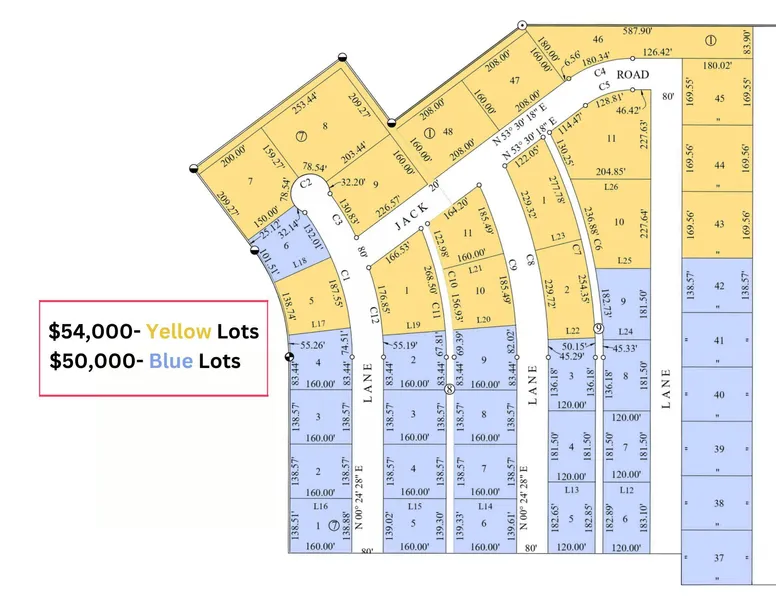 Buyer expenses: Buyer will pay for septic, survey, and for some lots electric line.