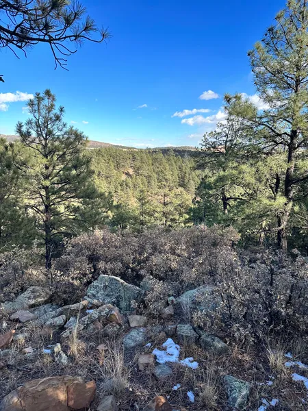 The upper elevations of the property afford excellent views of the nearby peaks Cerro Pelon and Cerro Montoso from multiple locations in the old-growth Ponderosas.
