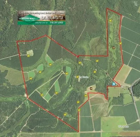 Over 75 acres of food plots are in place each with fiberglass box stands on towers. Other locations have 2 man ladder stands in place. See the aerial showing food plot and stand locations. There are 2 permanent duck blinds in place in a slough and in a 7 acre impoundment that can be flooded adjoining ag fields. Other areas offer the potential of flooded timber hunting with some levee work. You can also enjoy turkey and small game hunting as well as miles of roads and trail...