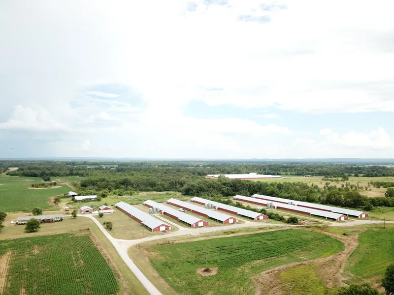 Other improvements on the farm include a 4 Bedroom site built home. A litter barn with shop area, two other enclosed shops, and a cattle working barn. The entire property is fenced and could be ready for livestock easily. The seller has the open ground leased out on a annual crop basis. There is another 40500 pad on the farm and more room for expansion in the future.