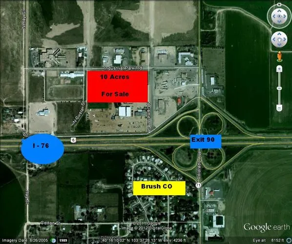 10 Acres in Brush Industrial Park with good access and view to I-76. Buy 2 acres or all 10 acres for Commercial / Retail or Industrial . Join Diggers Diner and Tomahawk Truck Stop , Pepsi, Schwans, MMI Manufacturing,and Flat River Agri. who all call Brush Industrial Park home. Several great small parcels available for your idea. Brush city utilities available. Paved city streets with curbs, gutters and sidewalks. Natural gas, city water tap, city sewer tap, available at lot lines and available. This would make a great Retail/Commercial location for your Business! Bring us your idea!
