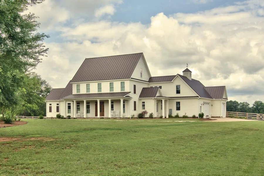 Classic American farmhouse with a twist! Youll recognize the clean lines, standing seam metal roof, and pair of deep porches strategically placed to capture sunrise and sunsets. Whats the twist? An interior floor plan that captures the best in modern home trends preserving the formal dining room, while opening up the living room, kitchen, and breakfast rooms with a wall of windows capturing breathtaking pastoral views.