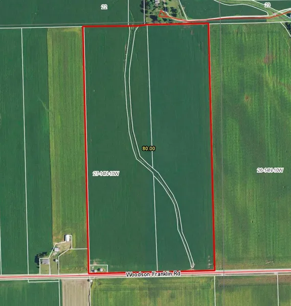 This is a very high quality Class A farm with a productivity index rating of 141.7. It has a complete pattern tile system on 40 foot spacings. The farm is 99% tillable (79.1 tillable acres). It is improved with two grain bins for a total on-site grain storage capacity of 18,000 bushels. The farm is located along the Woodson-Franklin Blacktop.
