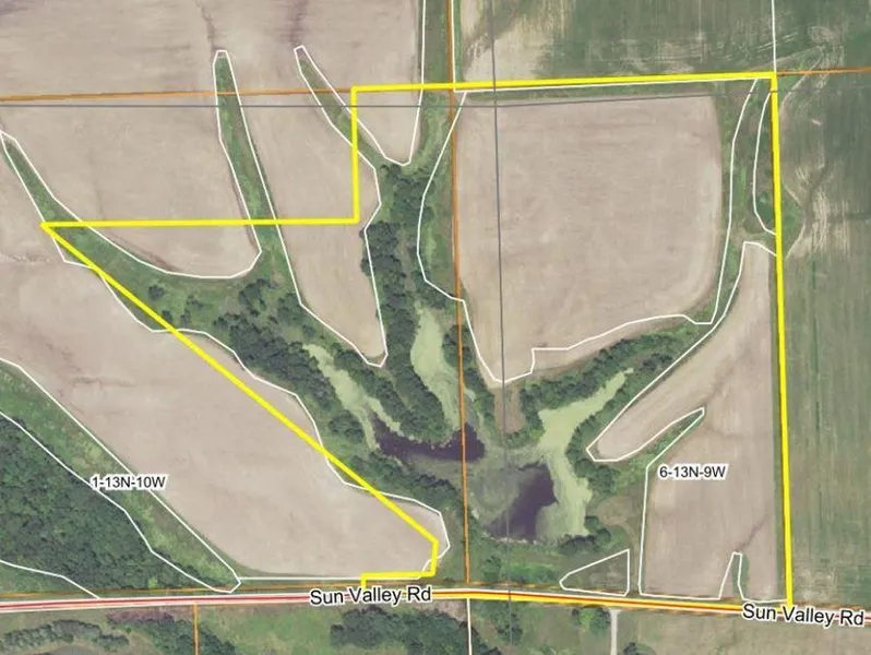 Property Location and Directions: Approximately 3.5 miles Southeast of Woodson in Morgan County, IL T13N-R9W-S6 and T13N-R10W-S1. Take Woodson Franklin Road East out of Woodson. Turn South onto Rawlings Road which turns into Sun Valley Road. Farm is located to the North of Sun Valley Road.