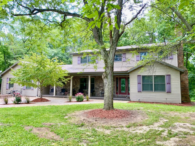 NEW PRICE! Now only $575,000. Rare chance to own a well-maintained home with 20 ACRES near Jacksonville, IL! 4 bedroom/3.5 bathroom home on manicured landscape. Privacy from the road and just minutes from town! The foyer opens up to the custom wood dining room and beautiful formal living room. The rest of the main floor boasts an office/den, relaxing family room, eat-in custom Cherry kitchen, 1.5 baths, and covetous laundry room. Additionally, a 3-season room leads to the back deck AND a beautiful concrete-stamped front porch invites sunset-gazing to the West. There are 2 geothermal systems (average utilities $208/month), vinyl windows (2009), central vac system, new shingles (2013), new siding (2009), not to mention the 48' x 32' insulated & heated 4-car detached garage. Approximately 7 acres of timber & 9 acres of grassy meadow are ready for your customization! All appliances stay. All...