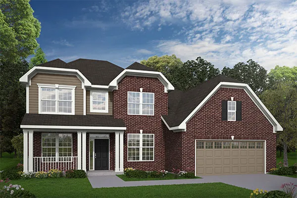 The Nantucket floor plan is a 2 story home with 4 bedrooms, 2.5 baths and over 2800 sq ft. First floor features family room, living room, dining room, and kitchen with breakfast nook. Upgrades include stainless steel appliances, granite countertops, upgraded flooring throughout, and double vanities in the master suite.