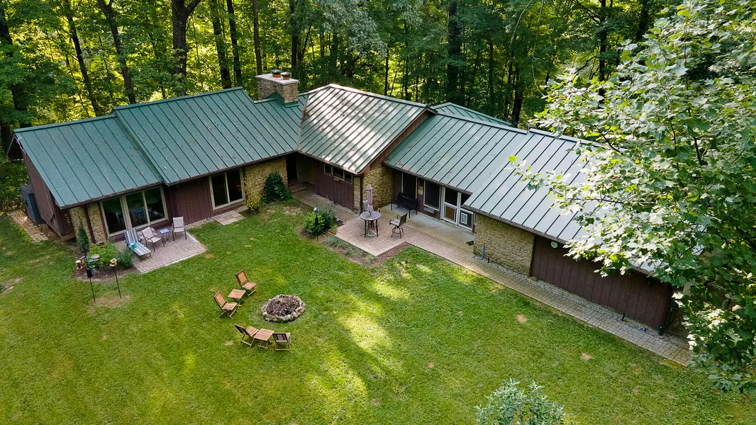 Nestled on 45 wooded ac, this private gated 3BR, 3BA hilltop property is a nature lover's paradise. Explore endless possibilities for hunting, w/miles of private trails perfect for 4-wheeling/hiking. Enter to a beautiful breezeway, DR & fully remodeled kit. Feat. quartz countertops, cust. cabinets, & large center island. Main lvl boasts 2BRs w/sliding doors that open to the patio, solarium, mudroom, private ofc & FR. Downstairs you'll find a WO bsmt, spacious LR, 3rd BR,& an add'l ofc. Updates include new windows, steel roof, & upd baths. Added feat. incl 2 WBFPs, an outdoor fire pit, 2 water heaters, fiber optic internet, & 400-amp service. Strg for all equip. 2CA gar, CP & det. 3CA gar. Experience nature-inspired living w/modern comfort!