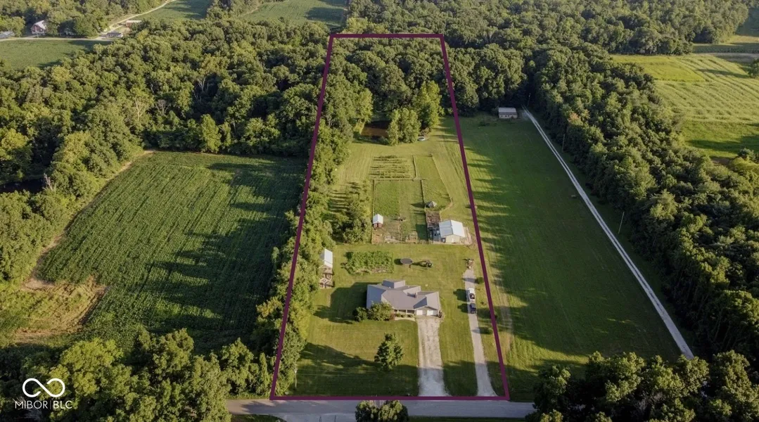 If you've been dreaming of a mini homestead or hobby farm with an orchard and robust garden, fenced pastures, and a stocked pond, this rare gem in Green Township, Indiana checks all the boxes. Located just minutes from downtown Martinsville and Center Grove, this ranch-style home with a main-level primary bedroom and full basement offers the perfect blend of comfort, functionality, and charm. Outside, nature does the heavy lifting with this 6.02-acre homestead featuring a thriving orchard with apple, pear, peach, cherry, and plum trees, plus raspberry bushes, grapevines, and active beehives-ideal for anyone pursuing sustainable living or small-scale farm-to-table gardening. Multiple fenced pastures are ready for goats, chickens, or hobby livestock, plus 2 outbuildings for storage and additional animal shelters. The fully stocked pond with a zipline is a showstopper, perfect for fishing, swimming, or entertaining. Inside, the open-concept floor plan connects a spacious kitchen and living area featuring a wood-burning stove and brand-new luxury vinyl plank (LVP) flooring throughout. Brand New Roof & Custom Windows. We're giving you lots of notice on this one - PRICED TO SELL FAST!