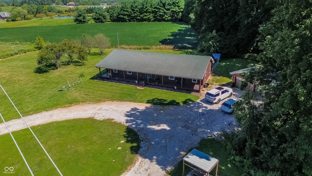 Set back off the road for ultimate privacy, this 1,900 sq. ft. rustic cedar ranch sits on over 7 acres in Monrovia, offering the perfect balance of peace and convenience. A large covered porch runs the length of the home, overlooking the front fields, while a spacious deck provides additional outdoor living space. Inside, you'll find hand-carved beams, hardwood floors, vaulted ceilings, and an open-concept floor plan that flows easily between living and dining areas. The kitchen features an oversized center island with breakfast bar, making it the heart of the home for cooking, entertaining, and gathering. The private primary suite is located on its own wing, offering comfort and seclusion. Recent updates include a newer roof, well pump, pressure tank, and windows. Outside, the property features dense woods with ATV trails, providing both recreation and privacy. An oversized detached garage/workshop offers plenty of space, with room to add a barn if desired. The land is versatile and well-suited for livestock, horses, or crop rental income. High-speed fiber internet is available, and the location offers a quick commute to Indianapolis and the airport. This property truly combines rustic charm, modern updates, and endless opportunities for both relaxation and land use.
