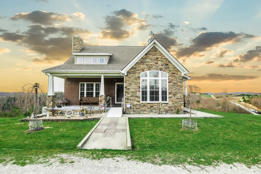 This immaculate home sits on 35 sprawling acres in Morgan County. You can take in the mountain views from almost every angle of this property. Start your day with the sunrise and breakfast, then and finish your day watching the sunset across the hills. Private setting, with a gated entrance, and long gravel drive. This home is handicap accessible. On the main level, you'll find maple hardwood floors throughout an open concept living area. The eat-in kitchen has 42in maple cabinets, Frigidaire appliances, a gas range and double oven, pantry, and breakfast bar. Off the kitchen is a half bath and laundry room. The master suite features a picture window, an outside entrance, and walk-in closet. The master bath has handicap accessible double-vanity sinks and shower, and a large jetted tub. The second level features 2 bedrooms, and a full bath. The basement has an outside entrance and patio, 2 storm shelters, and an automatic garage door. 4 storage buildings, 2 metal carports, an RV Carport and hookup, chicken coup with secure fencing and a Club House for the kids.