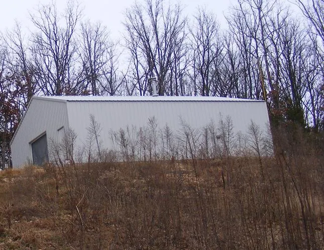 New 32x40 metal building. Drywalled, insulated, part carpeted with a kitchen, bath, studio area. Central heat and all it needs is the compressor for cental air. 10 ,wooded acres not far from Versailles.Bank owned