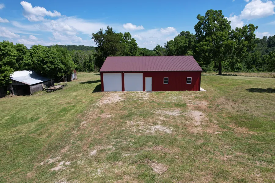 A 36x50 cabin provides approximately 900 +/- square feet of living space, featuring three bedrooms, one bathroom, and modern amenities such as an on-demand hot water heater and fiber internet. Two older outbuildings and a portable building provide ample storage for farm and hunting equipment.