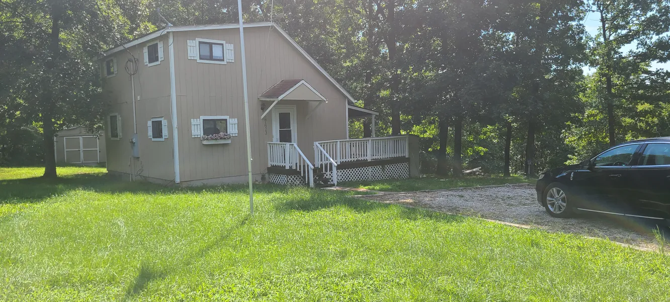 Little cabin in the woods! That is what this is. Vaulted ceilings in living room open to gallery walkway to 2 br 1 bath up. Has br down with full bath. Cute kitchen is open to living are. Great view and access to rear covered deck where you can watch the wildlife and relax while having your morning coffee. There is a parking pad with complete hookups for RV. Level road going in not far off main blacktop highway. If you are looking for peace and quiet, here you go. Features