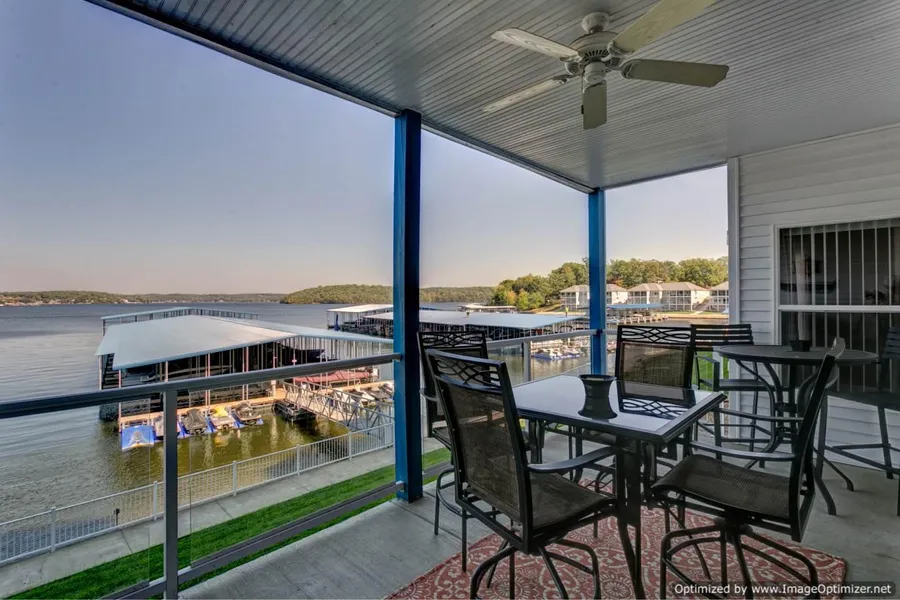 WALK IN UNIT Huge open concept living space with two complete floors of luxury lake-style living. Modern decor and colors done exquisitely! Upper level has everything you need for main floor living. Lower level has pool table, game area, kitchen, and another complete living area with master bedroom for guests & large laundry/utility area. 4 bedrooms, 2 are masters with private luxury baths, two fireplaces, two patios overlooking lake, two kitchens. Can put laundry on main floor if want, see kitchen laundry closet now used as pantry. Seller has 16x40 slip #29 available for $ and garage for $ as well. Unit price comes with 12x36 slip (slip 26 is where transitions to 39 ft) Complete turn key package awaits your Lake Living. Call for details on extras you can add to this complete TURN KEY condo package at the beautiful Lake of the Ozarks, Missouri.