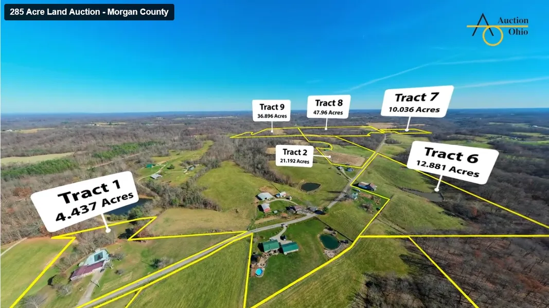 Terms: The auction will be conducted as a Multi Parcel auction allowing for bids to be placed on each tract or the whole and will sell in the manner that produces the highest price. Buyer(s) to deposit 10% of the bid price and close in 30 days. The seller is paying for and providing title insurance. Title is being provided by Varsity Title in Zanesville, Ohio. The seller is reserving the oil and gas rights. There will be no free gas or gas for sale. There are no leases in place. Possession will be March 1, 2023.