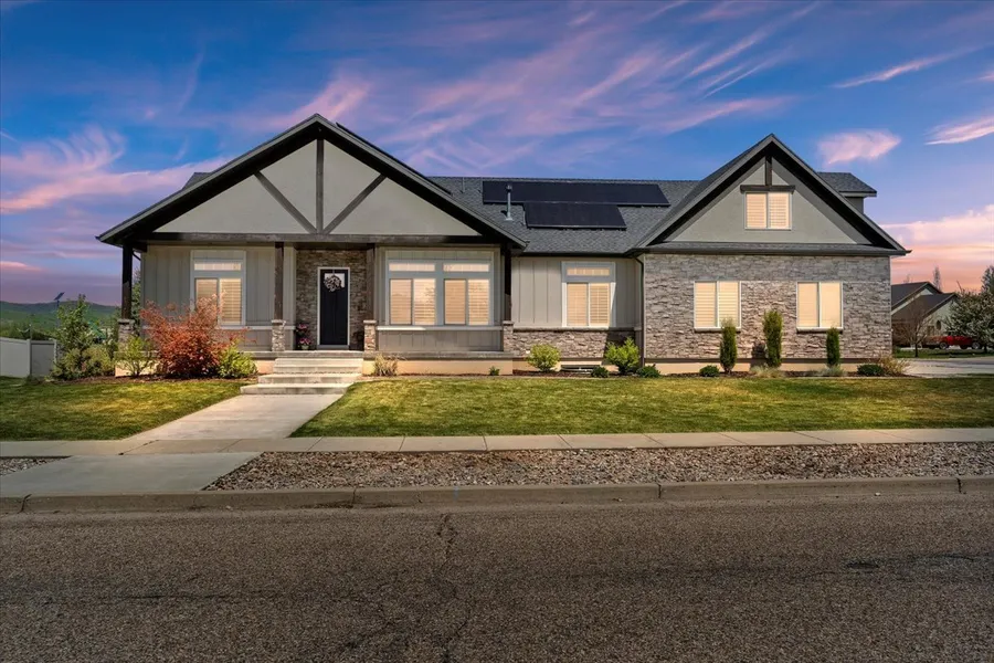 Modern elegance and income potential in the heart of Mountain Green! This exceptional home includes a private, fully furnished ADU above the garage-currently rented and approved for nightly rentals-offering built-in income or flexible guest space. Just minutes from world-class ski resorts like Snowbasin and Powder Mountain, it's a dream for vacationers and outdoor enthusiasts. On a scenic corner lot with stunning mountain views, the home features soaring ceilings, warm wood-style floors, and an open-concept layout. The gourmet kitchen boasts quartz countertops, gas cooktop, island, and walk-in pantry. A dedicated home office includes wood shutters, glass doors, and a built-in window seat. The finished lower level offers a private ensuite, living/rec space, second laundry, and spacious bath.