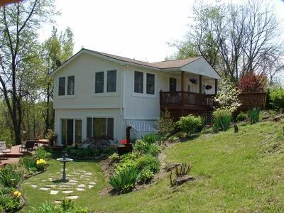 This 2 bedroom, 2 bathroom raised ranch with full basement, is only minutes from water, biking/hiking trails and downtown Berkeley Springs. The large, open kitchen offers ceramic tile floor, recessed lighting and breakfast bar. The living room has lots of windows, cathedral ceilings, 1½ story stone fireplace, and beautiful laminate flooring. The basement features a kitchenette w/ wet bar, recreation room with vaulted ceiling and free standing gas fireplace, family room with a gas fireplace and a big screen TV. Enjoy the private 2.43 acres with beautiful gardens and mountain views from the porches, tiered decks or patio.