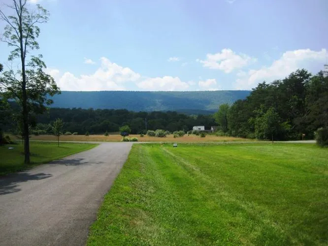 Agents: Back corner of this lot is in the 100 yr flood plain. Still plenty of room for a building site out of flood zone. Amazing view and great location minutes to VA line, walking distance to Cacapon State Park. Central sewer, underground utilities, paved roads and reasonable annual fees.