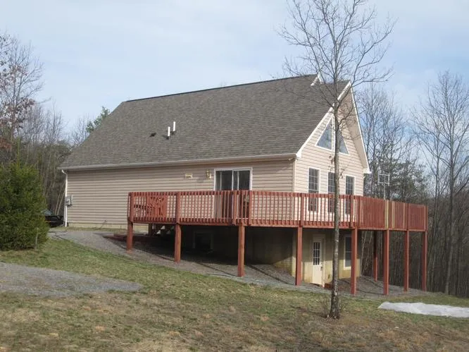 Chalet with 3 bedrooms, Master suite in loft; 2 baths; large great room and separate dining. views from all windows; Mountain views in both summer and winter. Mostly wooded 2.14 acres lot, with privacy and seclusion. Home is the last one on Roundtop Lane. Give us a call.