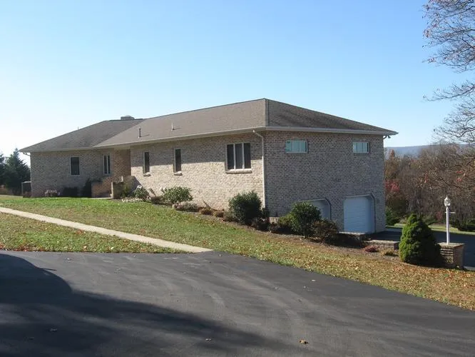 Great Price!! Quality built all brick rancher with great view of the mountains. Situated on 4 acres, home boasts 4 bedroom, 3 bathrooms, eat-in kitchen with island,sun room, large family room with woodstove, extra room that could be workshop/office, wood floors, fireplace, oversized attached 2 car garage plus a detached 2 car garage. Perfect place to retire and relax or for the family that likes room to roam.