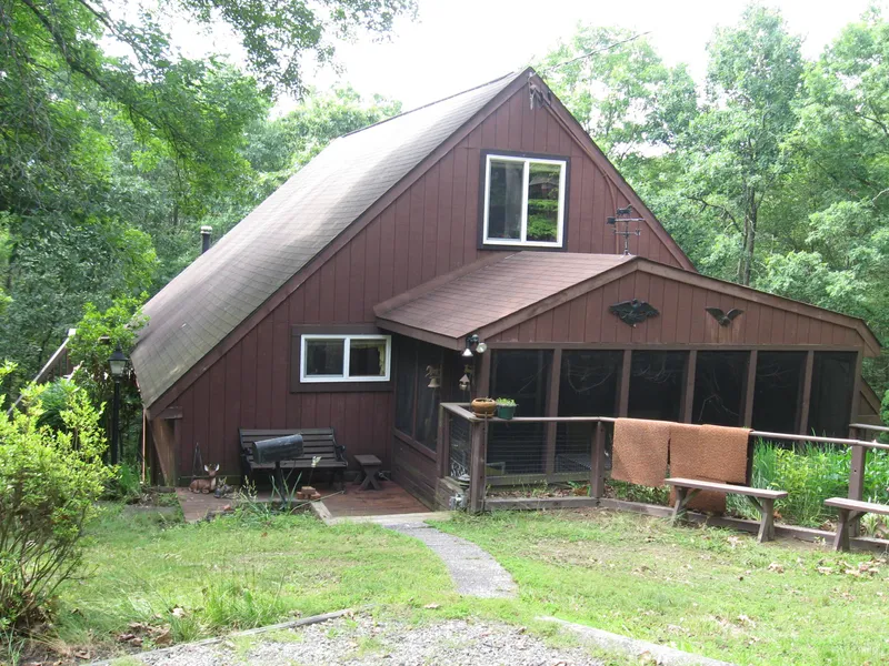 Looking for a quiet relaxing place? This Chalet has 2 bedrooms, 2 baths, large living area, large eat-in kitchen, screened in porch, big deck, shed for storage and a cozy wood burning stove for cool evenings. All situated on 6.2 acres wooded acres. Completely furnished and ready to move in to. If you love wild life, there are lots of deer and turkeys to watch.