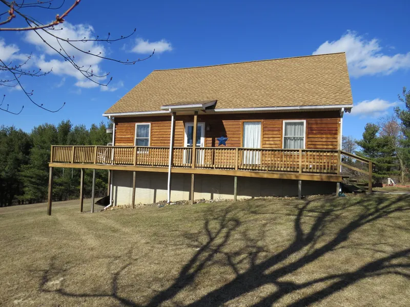 Pretty mountain views and well maintained chalet on 5 acres. This home has plenty of room with 3 bedrooms, 2.5 baths, full partially finished basement with laundry and storage room, wood floors, cathedral ceilings, kitchen island, a sun room, and a wrap around deck to take in the sunsets and rainbows, plus a shed that could be a great workshop/hobby space.