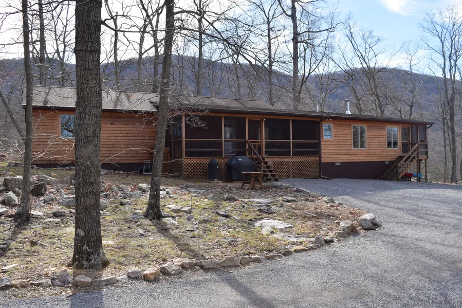 You will never want to leave this one level living cedar sided home. Tucked along the Cacapon Mountain on 22+ acres w/nature abounding,& privacy at its best is sure to please. Home offers 3 BR, 2 BA, Great Room, a sunroom, & recently upgraded kitchen. MBR has a cozy woodstove, screened porch & MBA w/walkin tiled shower. Home also offers a detached office/studio w/electric. Deeded river access.