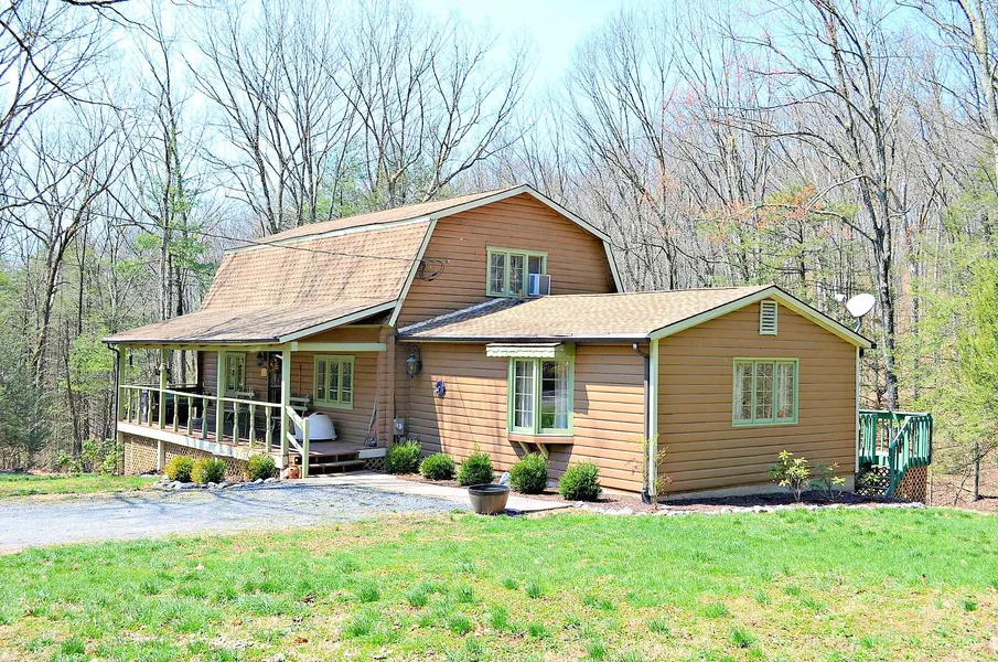 Privately located log home surrounded by tall trees in great commuter spot just off Rt. 9E of Berkeley Springs. Updated kitchen, baths and new master bedroom with barn doors to closet and bath. W/D hookups on main level. Durastone tile and wood floors. Gas stove / fire place in living room and wood stove in basement, whole house fan, covered front porch, back deck with awning, fire pit, new water treatment system.