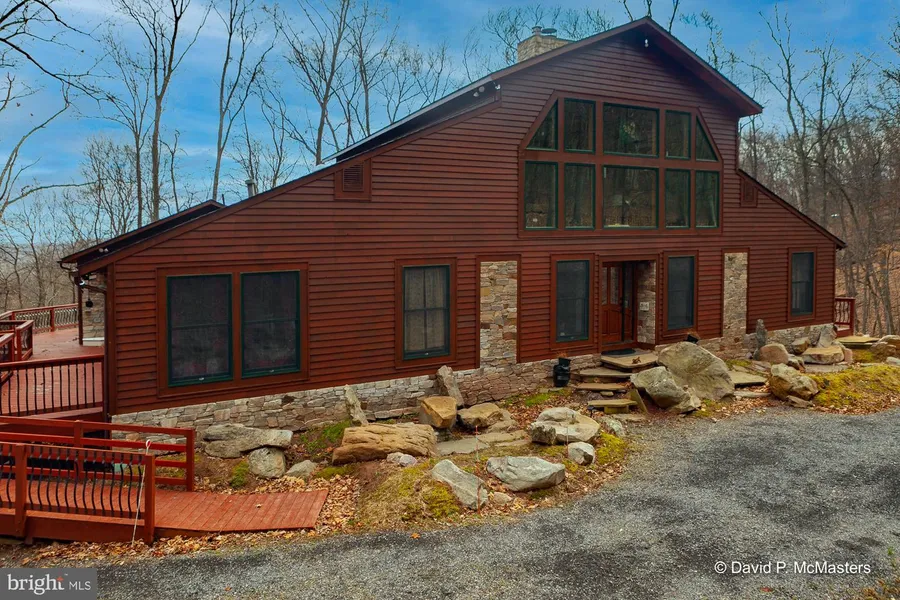 Inspired by a love of trees, this timelessly designed custom-built beauty drinks in the splendor of the forest from every available vantage point through walls of glass comprised of nearly 70 Andersen casement windows framed in rich cedar. The Chalet-inspired contemporary boasts more than 5,000 square feet of finished living space. Each of the home???s 11 main floor rooms is centrally anchored around the sun-filled sanctuary Great Room, which is capped on either side by circular staircases leading to northern- and southern-exposure lofts and a centrally-situated, handsome two-story stone quiet-motor Heatilator fireplace. A state-of-the-art Argo Technology Radiant Heating system sits beneath much of the home???s flooring, which includes handsome sandstone, slate, and quartz, locally grown and aged 50-year old milled rich walnut, and berber carpet. Carefully laid stone accent walls divide the space into intimate reading nooks, a breakfast bar, a rich wood library of built-in book cases, the inviting foyer, and the grand dining room, which is framed by an extensive stone archway and encased in a wall of windows. Warm light glows from above with well-placed Tiffany lighting and ceiling fans. Perfect for entertaining guests on long cool weekends, sleeping spaces include a luxurious Master Suite, two Guest Bedrooms, and a downstairs In-Law Suite, complete with full kitchen and dining area. Built in 2006, no expense was spared in realizing the owner???s vision of luxury. KraftMaid cabinetry and Porcher faucets can be found in the kitchens and baths, along with a double slipper claw-foot tub in the main-floor Guest Bath. The master bath is well appointed with custom tile work and a step-in shower with bench and three-head rain shower faucet. The Fisher & Paykel gas cooktop, Bosch double ovens, and 193-pound car weight aircraft cable dumbwaiter will delight the most discriminating culinarian in the expansive gourmet kitchen. Bonus spaces include a sewing/laundry room, which would serve well as a craft room, a downstairs recreation room with 9-foot maple Champion pool table and well-placed wood stove, a screened porch perfect for entertaining into the evening, an outdoor shower, an oversized-two car garage with solid wood doors, ample storage in the unfinished areas, and more than 1,500 square feet of decking on three sides of the home, including a 48-inch ADA-compliant ramp from the driveway. The 14??? on center joist beam construction built to CA-standard building codes, motorized casement windows, a recently installed Friedrich multi-zone heating system, quiet-close cabinetry, and newly installed Midea dryer are just some of the high-quality finishing touches. Annual memberships are available to nearby Avalon Resort, featuring vacation condos, cabins, and an aquatics center. Just two hours from the DC area, 40 minutes from shops and restaurants in Winchester, VA, and 30 minutes to the historic spas of Berkeley Springs. This home is part of a family-friendly clothing optional community. Come check out this luxurious mountain getaway and find out why West Virginia is considered Almost Heaven.