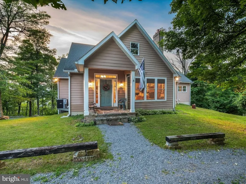 Experience breathtaking views from this custom-built mountain top beauty! Featuring 9' ceilings, crown molding, oak hardwood and tile floors, and a real stone wood burning fireplace. The open kitchen-dining room and living room create an ideal space for entertaining family and friends. The living room boasts a wood burning fireplace and built-in shelving. The large primary bedroom includes a large primary bathroom with a tiled walk-in shower. Step out onto the screened-in porch for a serene outdoor experience. This 3 bedroom, 3 bath home with a full walkout basement sits on 9 mostly wooded acres at the end of the subdivision and bordering Cacapon State Park mountain land. If you love sunsets this is the place to be!