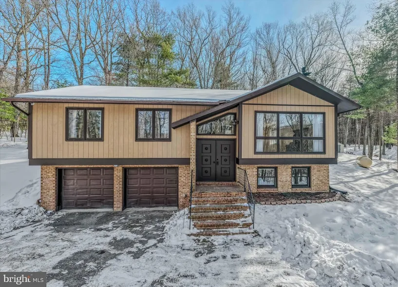 This spacious Split Foyer boasts 3 bedrooms, 2.5 bathrooms, a kitchen, and an expansive open-plan dining and living area featuring large windows that flood the space with natural light, hardwood flooring, and a wood-burning stove. The lower level offers a large family room equipped with a propane stove for warmth, complemented by a laundry room and half bathroom. Additional features include a two-car garage for convenient parking. The property's heating and cooling system includes a mini-split system, propane and baseboard heat, allowing for efficient temperature control. Situated on 1.94 acres within the desirable Shirley Farms Subdivision.