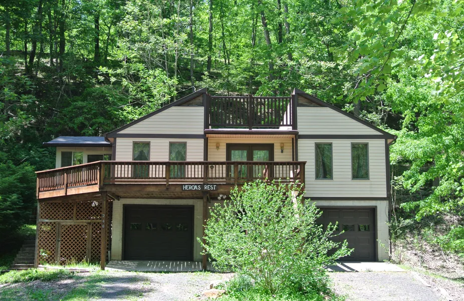 Escape to the River! 3 BR 2 BA home with full basement. Relax on the deck and soak in the sparkling river view with the mountain view in the distance. Home has renovated kitchen and a back deck that leads to a quiet courtyard.Lots of windows to bring the outside in. Soothe your soul here.Leave all the hustle bustle of city life behind you.Settle in & enjoy your riverfront escape full or part time. Walk to the river or just enjoy the river view from the deck.