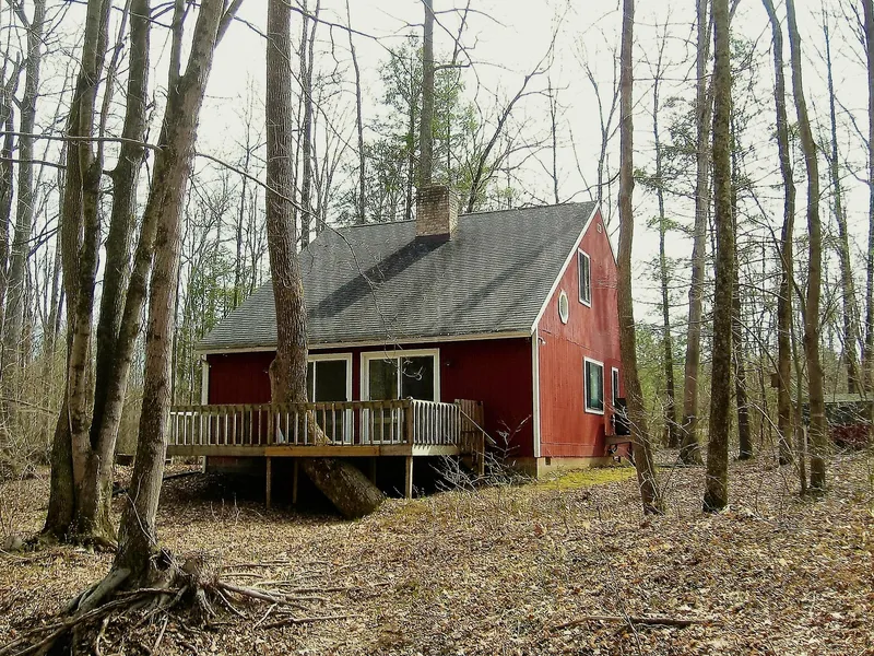 Sneak away to this creekside paradise! Saltbox cabin w/ 3 br/2bth, open floor plan, Australian hardwood floors, wood pellet stove for extra cozy heat, firepit w/ tree trunk campfire circle on 4.84 waterfront acres. Enjoy the natural sounds and creek view from the back deck with a grand old tree growing through it! All the modern conveniences you need with the peaceful setting you want!!