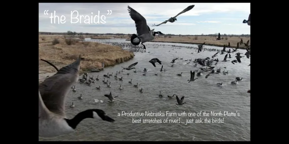 Check out the video: The Braids The Braids Right off the bat, if you like river itself, love hunting it for ducks and geese, and thats specifically what youre looking for, you likely wont find a better chunk of flatwater than The Braids. Furthermore, even if you dont have a desire to hunt right on it, you still wont find many private hunting lands possessing pieces of Western Nebraskas famed North Platte River any more suitable for roosting waterfowl particularly Canada geese! This is due to its character. A locally-raised person who worked years ago for a large cattle operation, and had to run an airboat up and down the river as part of his duties, said that it was always difficult to get through this particular section of the North Platte. Why? Because it was so spread into different channels and therefore; very shallow sandbars everywhere. Perfect!!! If you are already a river hunter...