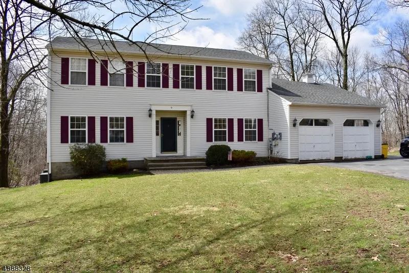 Stately "Lakeview Community" Colonial situated at the end of a cul-de-sac. This home's most unique feature is the first floor bedroom with full bathroom. Formal living room and dining room and elegant entrance foyer. Large family room with wood burning fireplace and high transom windows, room extends to open concept kitchen with skylight and separate dining area and center island. Pantry and 1st floor laundry lead to 2 car garage. Upstairs are four generously proportioned bedrooms and two full baths, the master boasting skylight, walk in closet, jetted tub and stall shower. Young roof and central A/C. Sliders lead you to a new, stunning composite multi-tiered deck that is screaming for a POOL PARTY!. Unfinished basement has sliders that walk out to the private, open yard with year round beautiful nature views. Save $$$- SOLAR panels are owned!