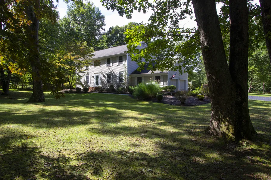 Rockaway Township! Tasteful colonial situated on beautiful park like property w/ awesome views & ample privacy. Inside you're greeted w/a two story entrance. DR & sunken LR have wide plank hardwood floors Two sets of French doors provide separation from the open floor plan family room. Ornate Wood burning stove with Hampton porcelain insert with heatolater & thermostat. Luminous windows highlight the natural beauty of the yard w/ deck, garden, fish pond. Eat in kitchen highlights stainless steel double wall oven, updated quartz counter tops & back splash. Upstairs master is generously proportioned w/ separate closet/ dressing area with high end built-ins. The bone dry full finished basement is perfect for entertaining with 6 channel Polk audio speakers in the ceiling, full bath & recessed lighting. Separate gym and laundry room. New hot water heater & HVAC systems. Crystal clear well wat...